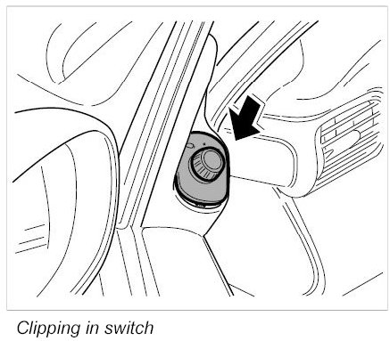 2. Push electric wire into the mount for the rear-view mirror switch and clip the switch into the mount.