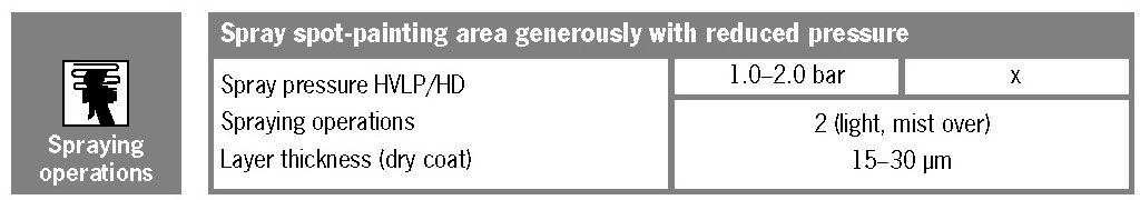 The condition of the original paint finish and the position of the damage on the component help you to decide on a partial painting procedure or a spot-painting procedure.