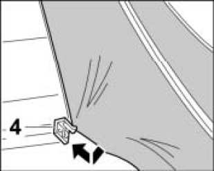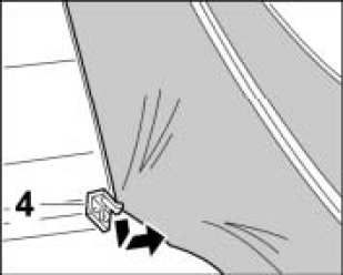 7.1. Engage strip -4- on left and right of cloth from below.