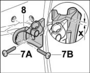 3.1. Replace self-locking screws, position bracket with clearance of -X- Installation dimension 8 mm from upper edge of door seal and screw down with the fastening screws -7A- and -7B-. Tightening torque 17 ftlb. +/-1.5 ftlb.