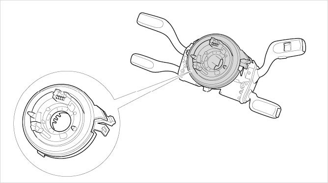 - When removing and installing the steering column switch, turn the steering wheel so that the wheels are in straight-ahead position. This ensures that the airbag contact unit is locked in the central position.
