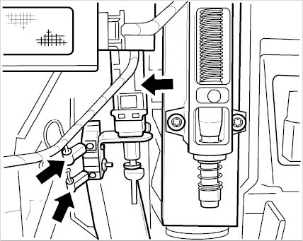 --> Adjustment for clutch pedal switch (interlock switch) Plug in connector.