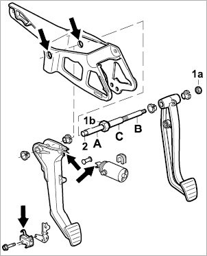 The brake pedal can only be removed when the clutch pedal has been removed.