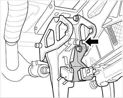 When removing the bracket for the clutch power spring, carefully guide the master cylinder valve pushrod past at the clutch pedal.