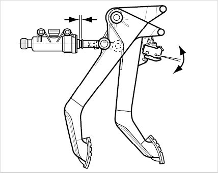 If the clutch pedal switch adjustment (interlock switch) has been changed, the adjustment must be checked or adjusted. The switch must switch when the clutch pedal is actuated approx. 1-2 mm before the limit stop of the clutch master cylinder.