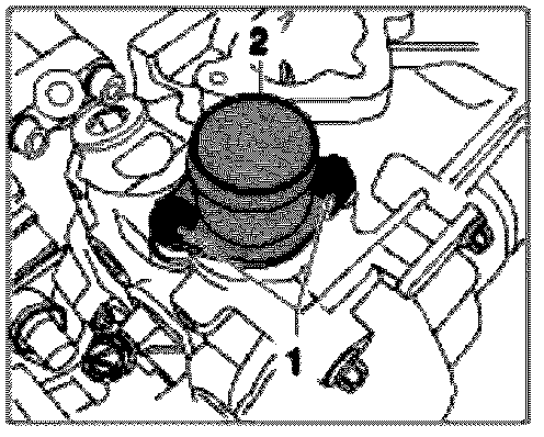 15. Remove oil filler neck -2- by unscrewing the two Torx screws (M6 x 11) -1 -. During installation, replace screws with new ones. Replace O-ring and plugs during installation.