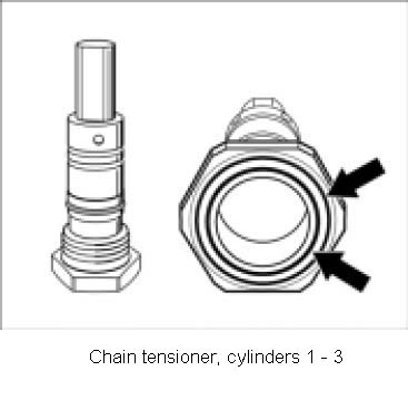 - Chain tensioner on cylinder head, cylinder bank 4 - 6, no identification.