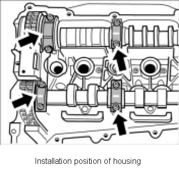 ^ Make sure that the bearing sleeve on the inlet camshaft is positioned correctly.
