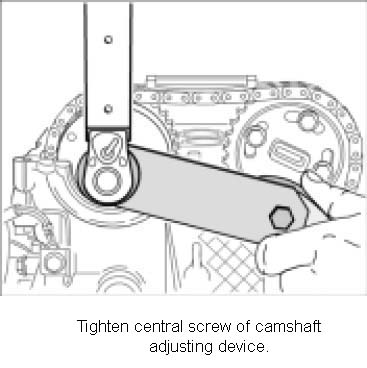 ^ Before disassembling the cylinder head cover, it is essential to unscrew the central screw on the camshaft adjustment device.