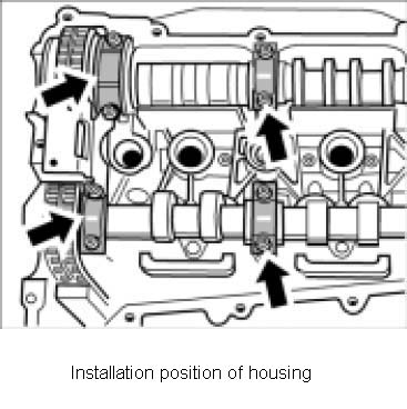 ^ Do not interchange the thrust bearings of the inlet and exhaust camshafts during assembly; observe identification markings.