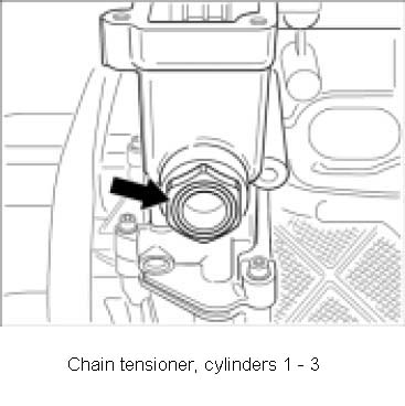 7. Remove chain tensioner for cylinders 1 - 3 or 4 - 6.