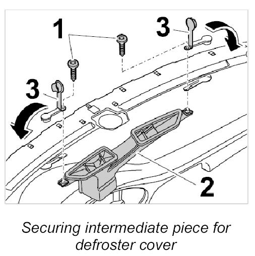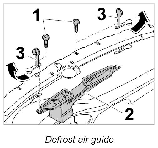 1. Pull defrost air guide -2- up out of the heater/air-conditioning unit.