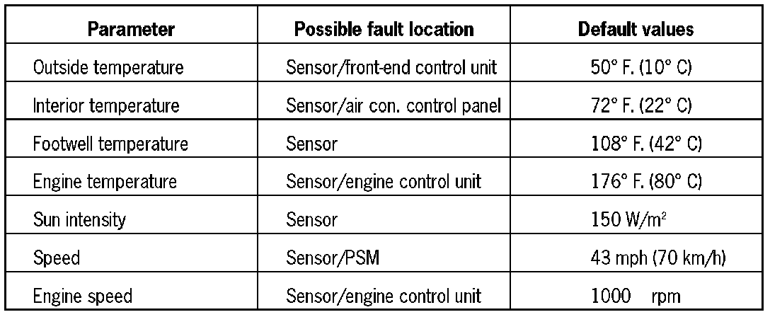 As on the previous Boxster/S (986) models, in the event of a short-circuit or interruption of a sensor default values are employed to maintain operation of the a/c control system in emergency mode