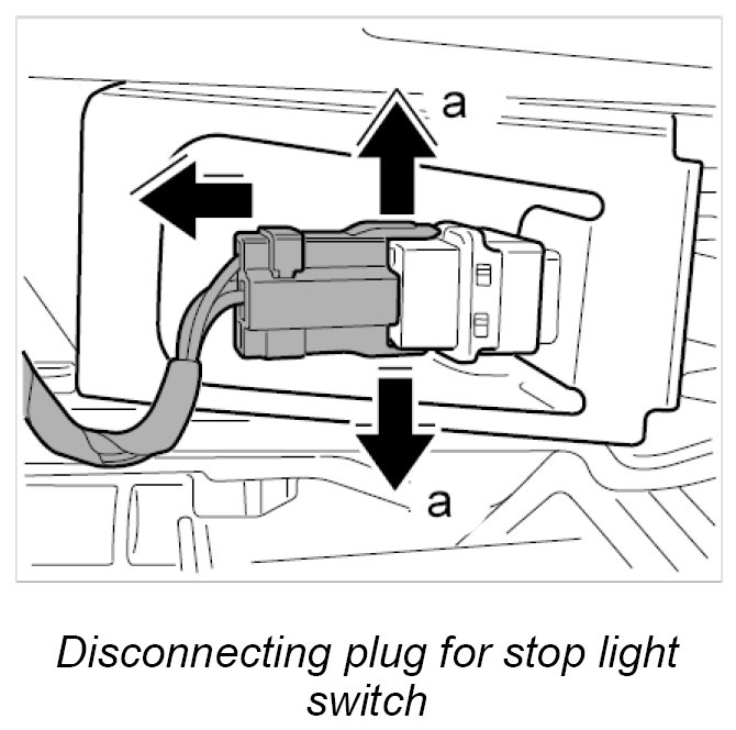 2. Disengage plug from stop light switch on both sides (Arrows a) and remove.