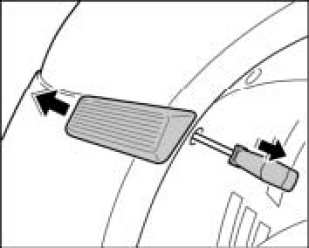 1. Insert a screwdriver through the opening in the wheel housing liner, press on the spring clamp at the direction indicator light and remove the direction indicator light.