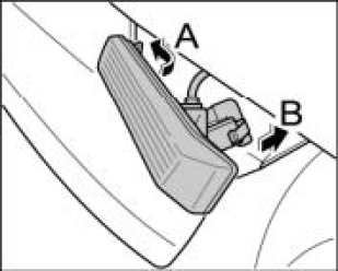 4. Engage the direction indicator light in the front apron -A- and clip it in -B-.