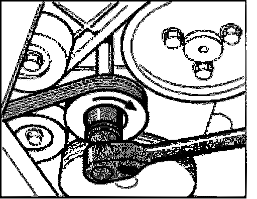 1. Turn the tensioning roller clockwise at the hexagon (a/f 24) and simultaneously remove the belt from the deflection rollers.