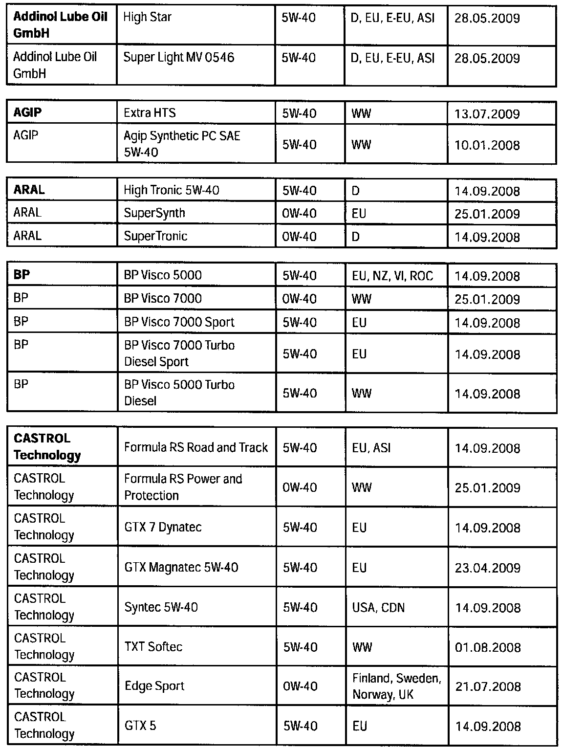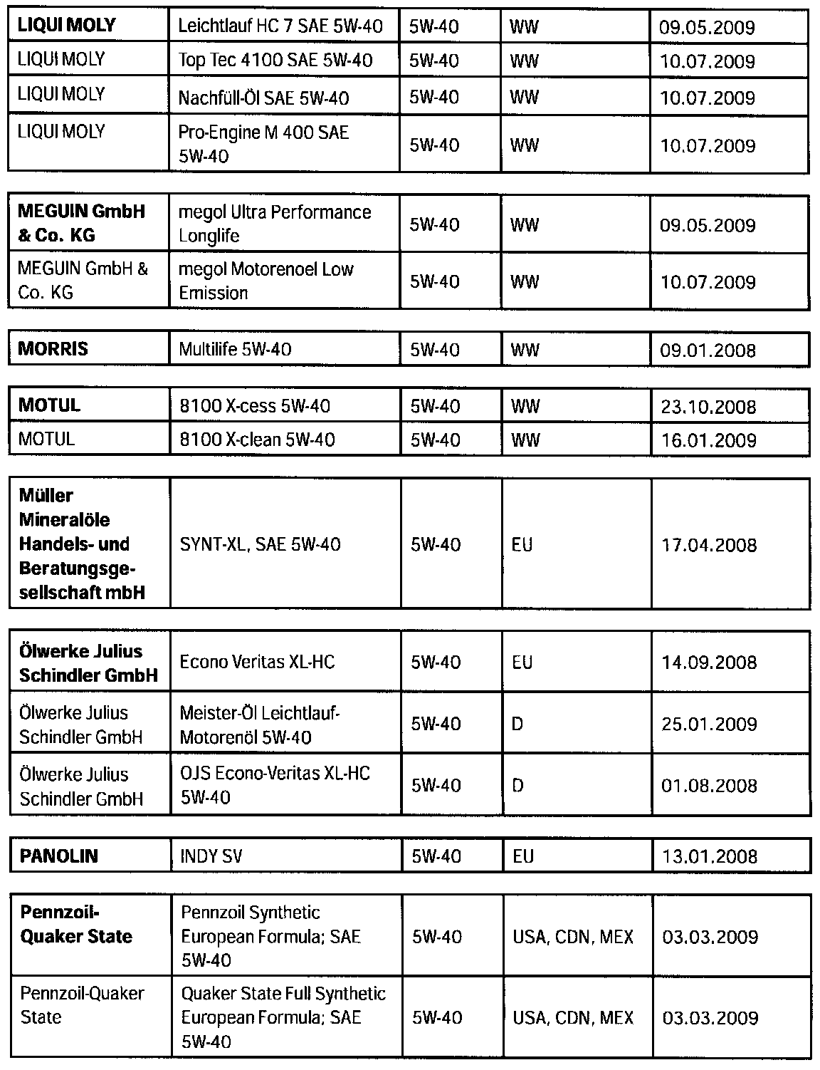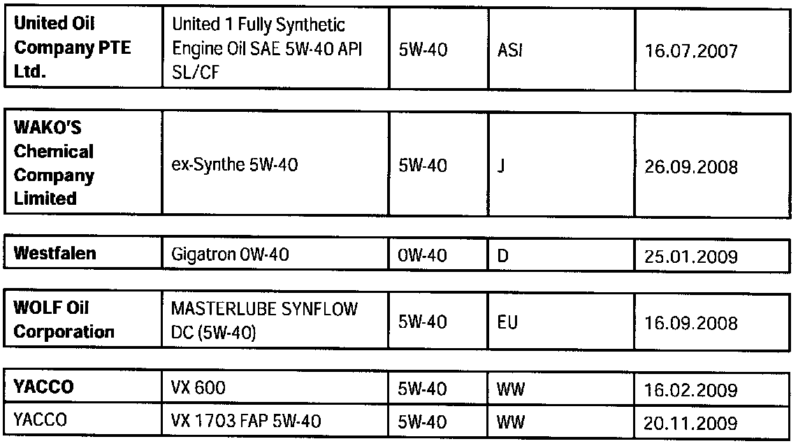 Overview of engine oils approved by Porsche, "Porsche approval list".