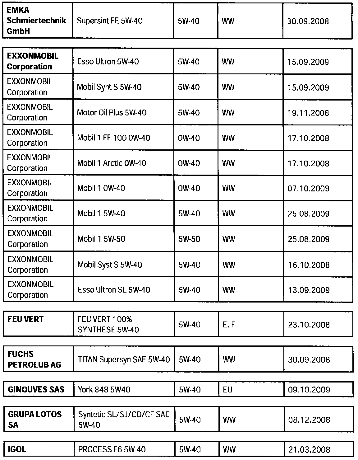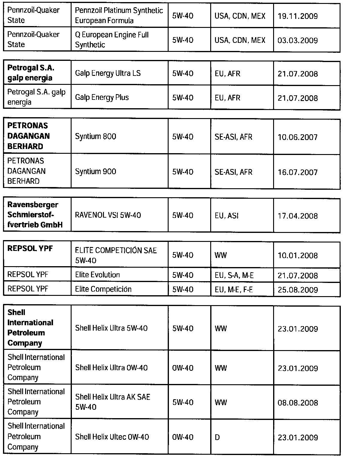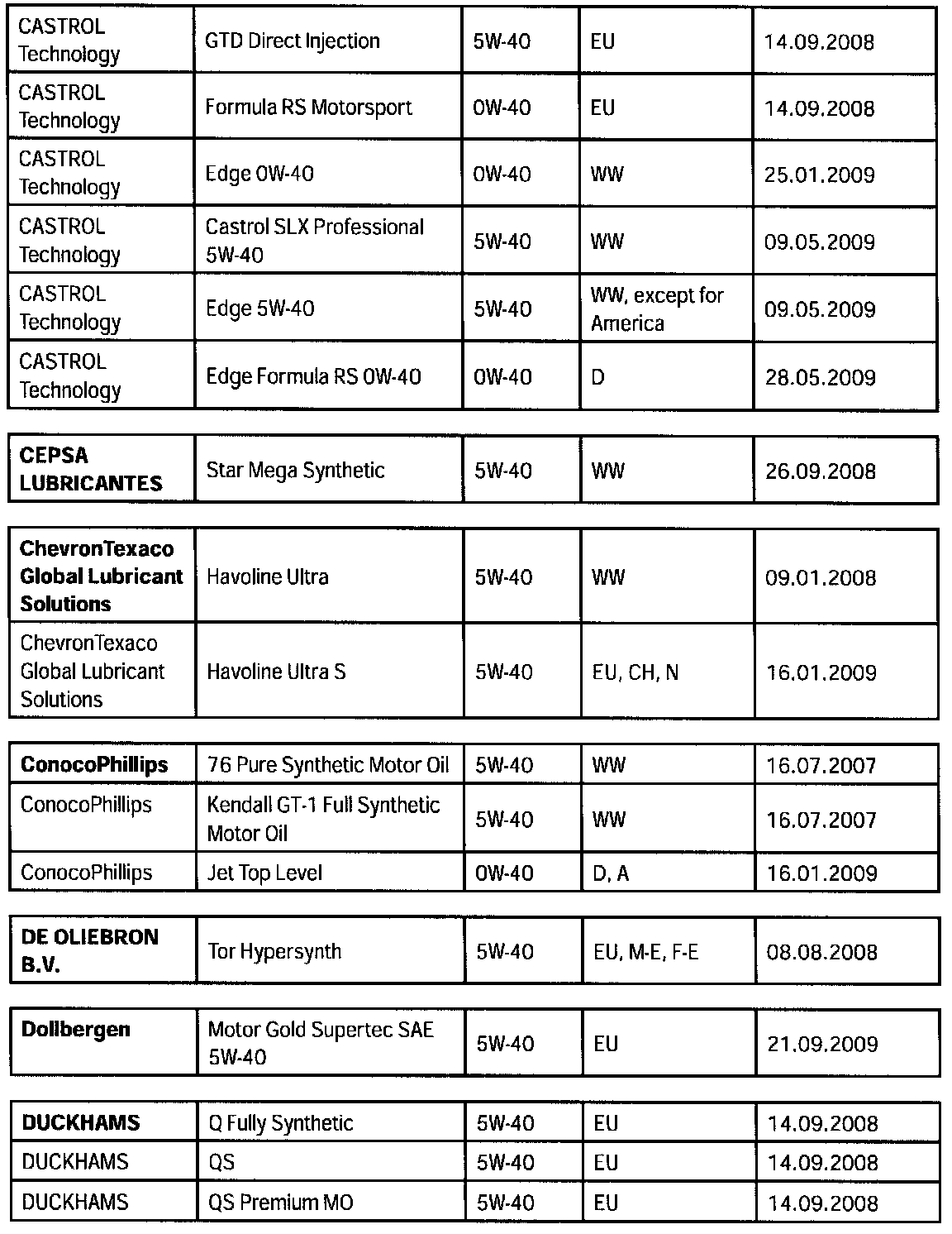 Overview of engine oils approved by Porsche, "Porsche approval list".
