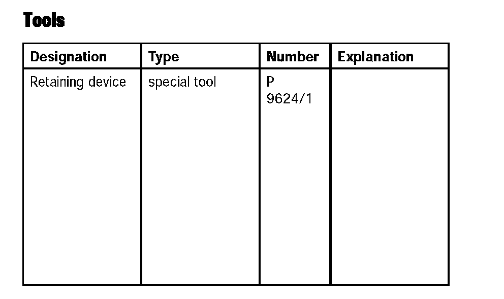 5. Retaining device P 9624/1 must then be screwed to cross member, then turn spindle upwards and support engine.