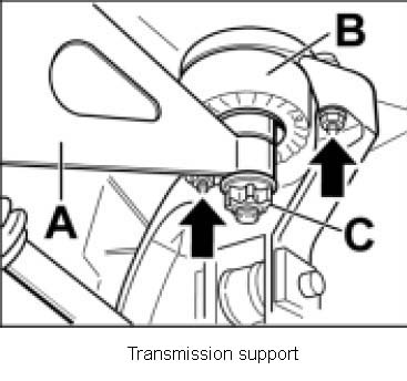 3. Unscrew fastening screws between the transmission support and the transmission.