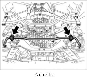 1. Loosen fastening screws between anti-roll bar and rear axle carrier side panel and fold anti-roll bar forward.