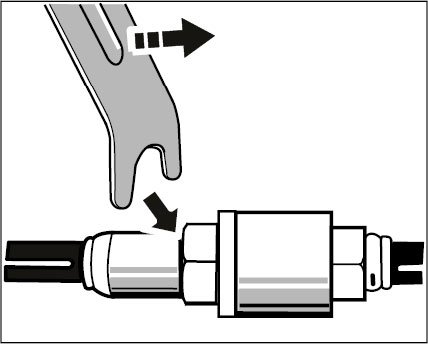 The 60 degrees chamfer on the loosening tool must be facing the 60 degrees chamfer from the connector (line -1-)!