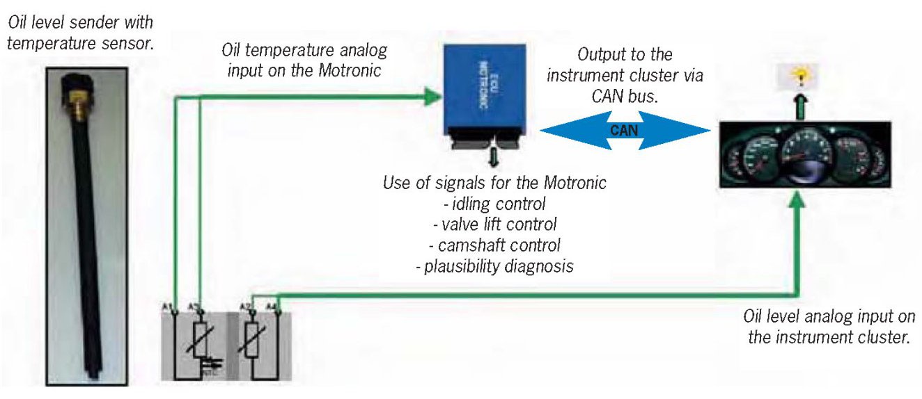 Oil level measurement is initiated via terminal 15 or manual selection via the "OIL" menu in the instrument cluster.