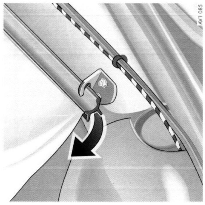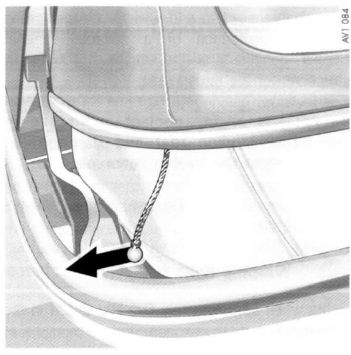 On vehicles with luggage net unhook the hooks on both sides of the roll-over bar (arrow).