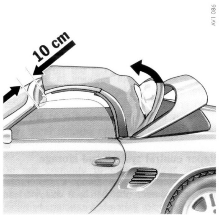 1. Open or close the convertible top far enough so that it is approximately 10 cm away from the windshield frame.