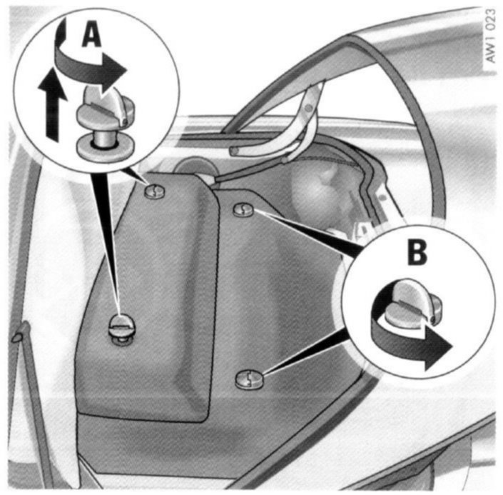 On vehicles with luggage net, the two front turnlocks also have to be opened.