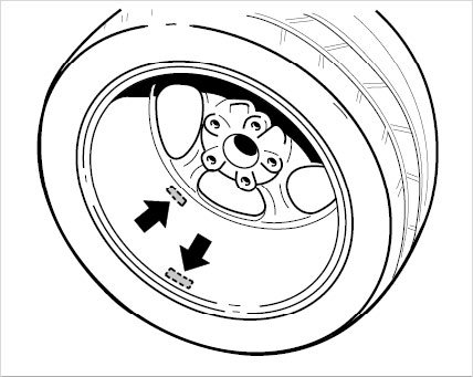 A value of 80g/80g (90g/90g using the tire pressure monitoring system) should not be exceeded with interior balancing behind wheel center. A considerably different distribution, e.g. 35/90 g is very unfavorable; this usually indicates incorrect fitting. Problem wheels of this kind often have pronounced radial and axial runout values.