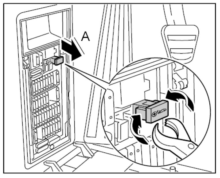 1. Pull out the power connection -A- on the fuse carrier.