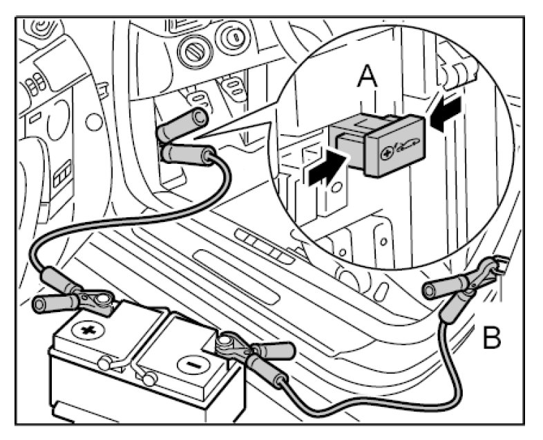 Preliminary work for external power connection, jump lead starting
