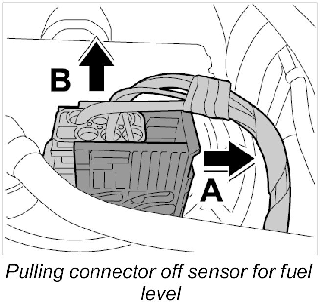 4.1. Release connector completely on fuel level sensor -arrow A- and pull it off -arrow B-.
