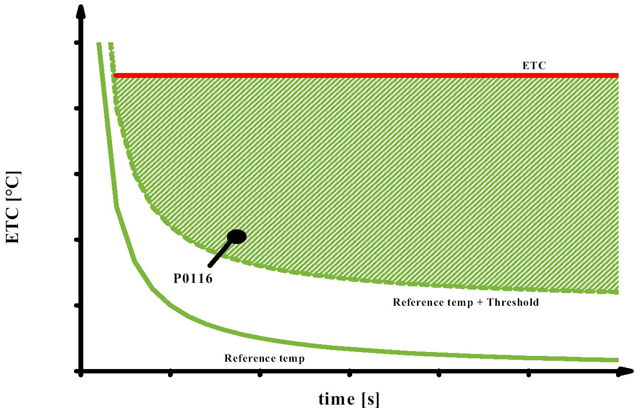 (engine coolant temperature - reference temperature) > threshold