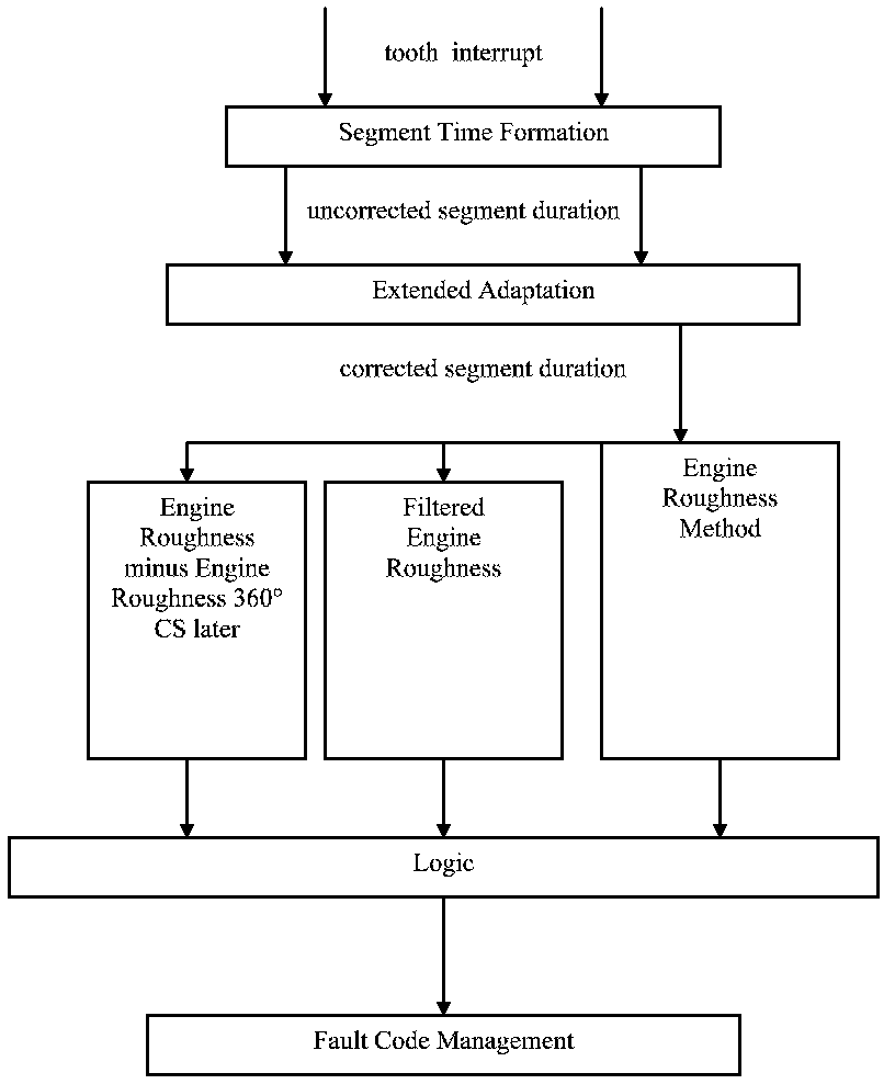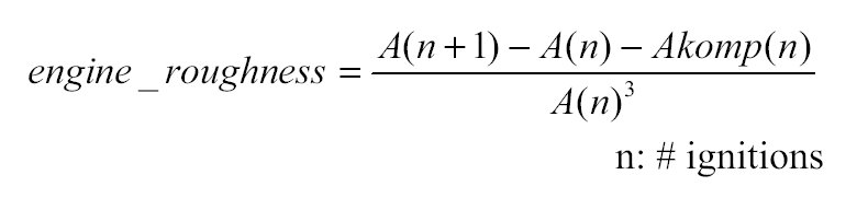 The engine roughness (angular acceleration change) for each combustion is calculated from several temporary and consecutive segment times as follows:
