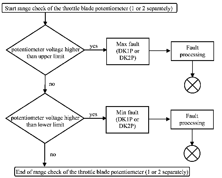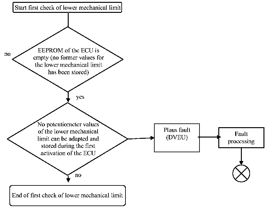 - Monitoring of the lower mechanical limit of the throttle body device. The potentiometer values of the lower mechanical limit are monitored with thresholds in the function monitoring of the ECU.