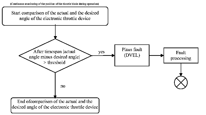 The plausibility check is done with a comparison of the throttle blade angle from the potentiometer and an angle derived from the air mass flow. This check is only done if one electrical error of one potentiometer has occurred.