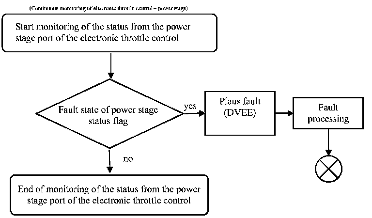 Every fault from the function monitoring in the ECU described below results in the switch off of the power stage form the throttle body device. Additionally the maximum allowable engine speed is reduced. That means that the car can only be operated in a limp home mode. This limp home is called safety fuel cut off.