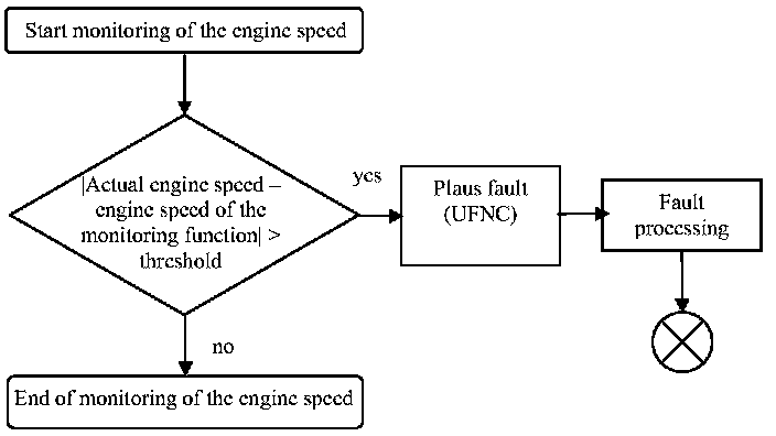 - Monitoring of the engine speed in the case of safety fuel cut off: if the engine speed in the case of safety fuel cut off is higher than a permitted threshold, the ECU reaction will be reset.