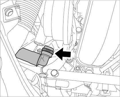 4. Fit and tighten Torx screw (M6 x 12) to secure holding clamp on vent line -arrow-. --> Tightening torque: 7.5 ftlb.