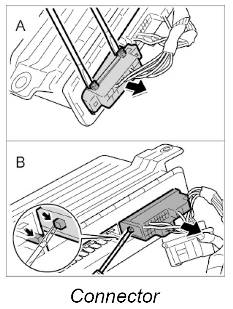 4. -B- Carefully lever the connector away from the control unit using one screwdriver.