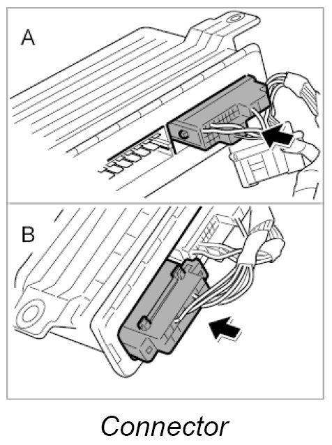 1. Press electrical connectors -A, B- into control unit until they are felt to engage.
