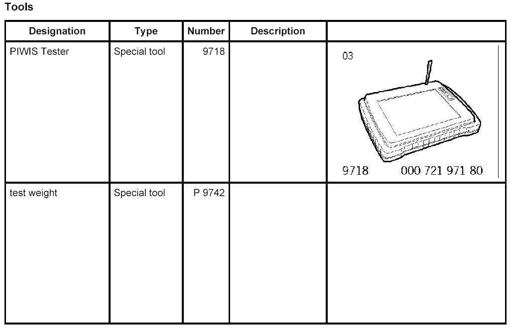 - The PIWIS Tester 9718 instructions take precedence since the description may be different. This may be due to more recent software versions.