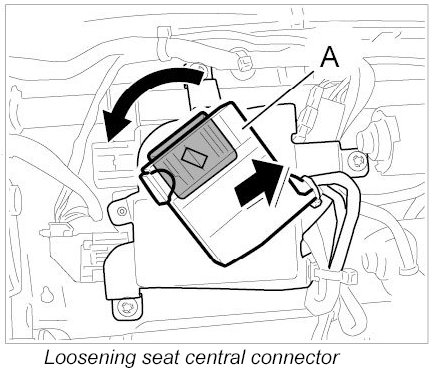 1. Turn seat central connector -A- at AWS holder to the left and remove from the holder.