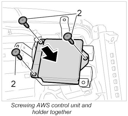 1. If the AWS control unit has been replaced, the new AWS control unit must be taught and calibrated under AWS Control unit replacement. Refer to Removing and installing AWS control unit on "Programming" Refer to Calibrating AWS control unit on "Calibrating"