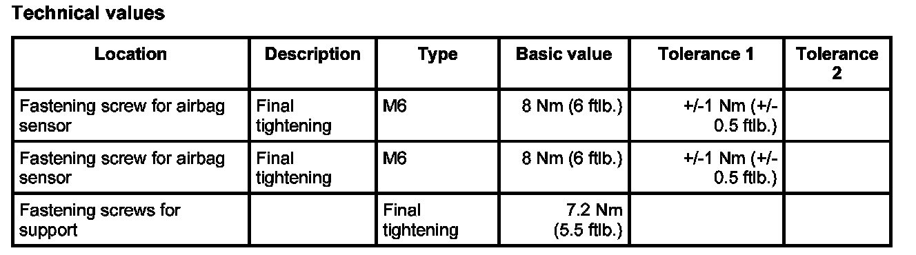- The airbag sensors cannot be interchanged. Install the sensor listed in the Spare Parts Catalogue (PET).