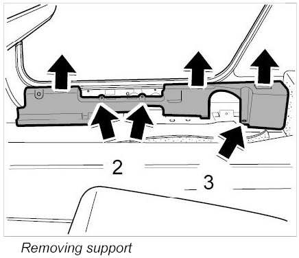 3. Unscrew fastening screws -2- and nuts -3- and carefully pull the support up and out of the retaining points.