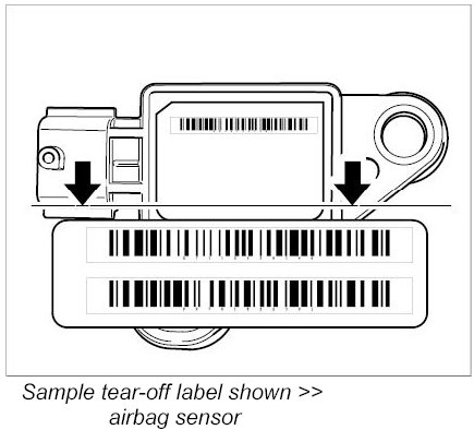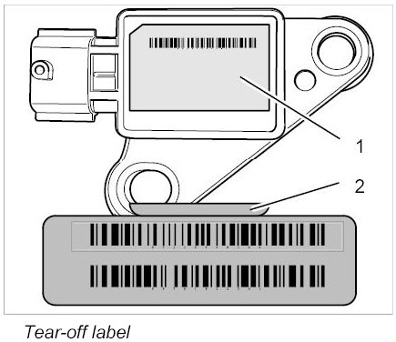 INFORMATION: If a new component (e.g. sensor, airbag control unit, airbag unit) of the airbag system has to be installed, the new component will be supplied with a barcode sticker (tear-off label).